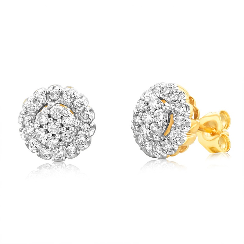 3/4 Carat Diamond Cluster Stud Earrings in 10ct Yellow Gold