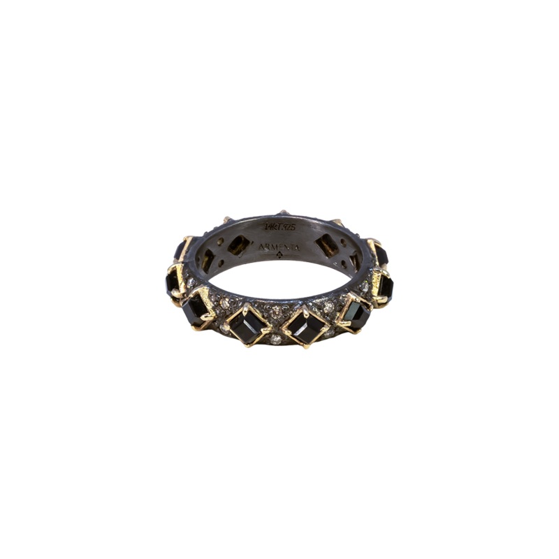 Ring 14k Rose Gold and Grey Sterling Silver with 0.224 CT Champagne Diamond and Square Blue Tiger.