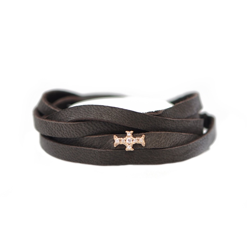 14k Rose Gold and Grey Sterling Silver Bracelet with 0.05 CT White Diamonds.