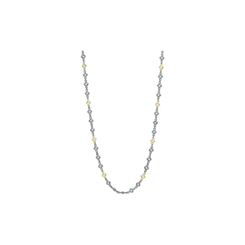Necklace 18k Yellow Gold and Grey Sterling Silver Open Scroll. Toggle closure, adjustable at 30″,32″ and 34″.