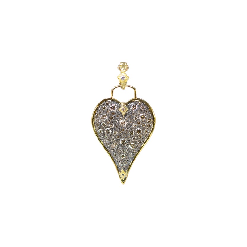Enhancer 18k Yellow Gold and Grey Sterling Silver with 1.39 CT White and Champagne Diamonds Posed on a 35 mm heart shield.