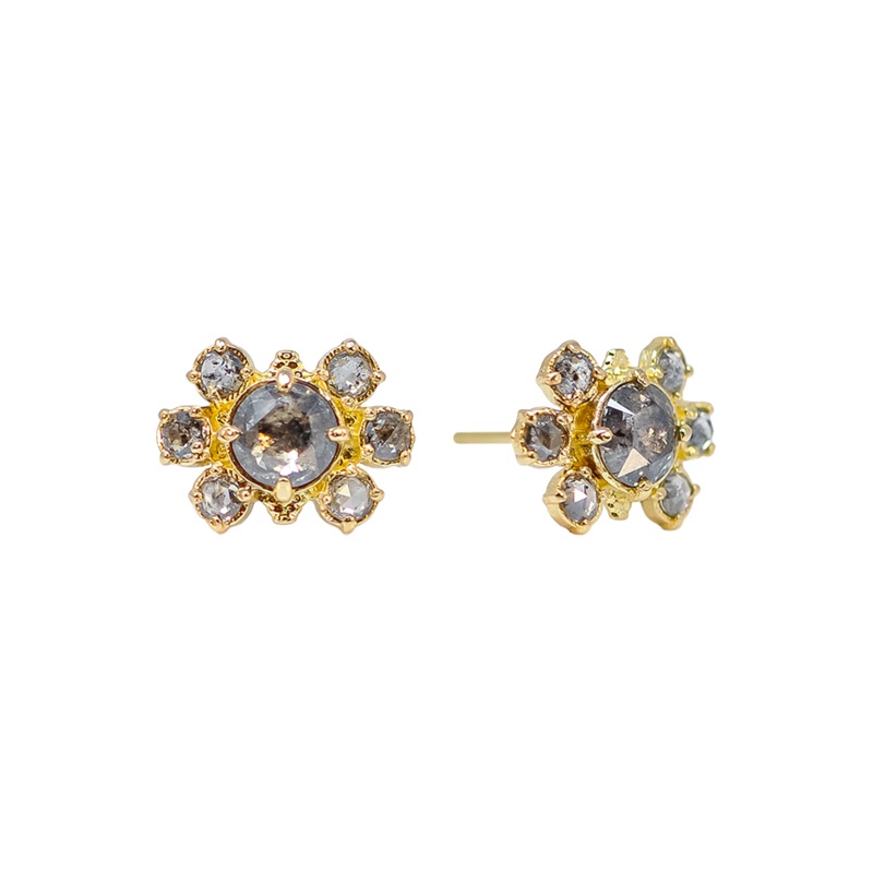 Stud Earring 18K Yellow Gold with 1.41 CT Grey Diamonds.