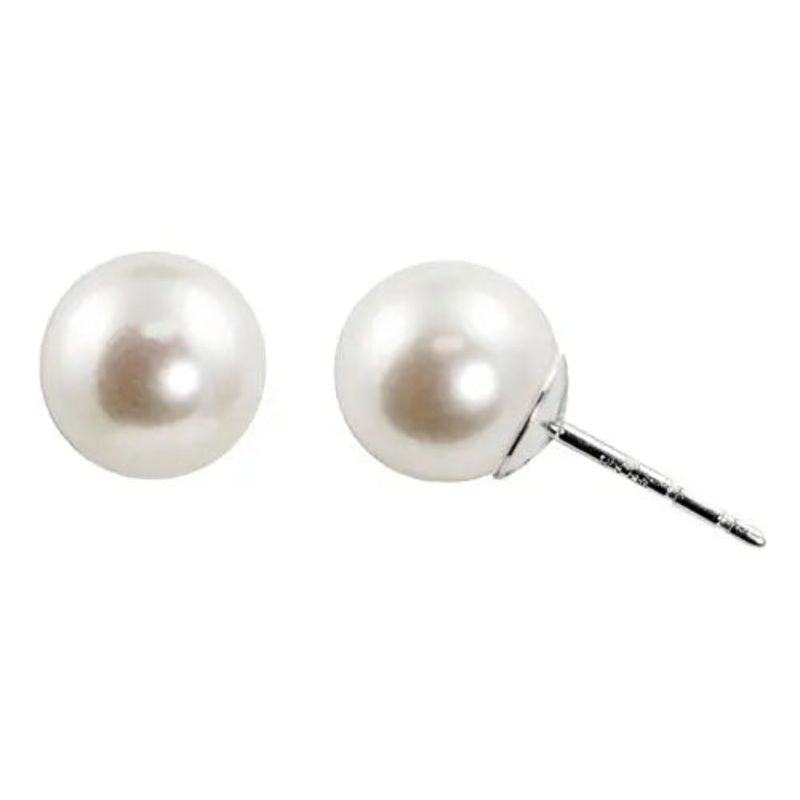 14 karat white gold 8mm AA quality Akoya stud earrings with post and friction back closure.
