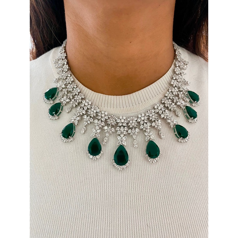 9 Emerald Drops Flower Diamond Necklace Set