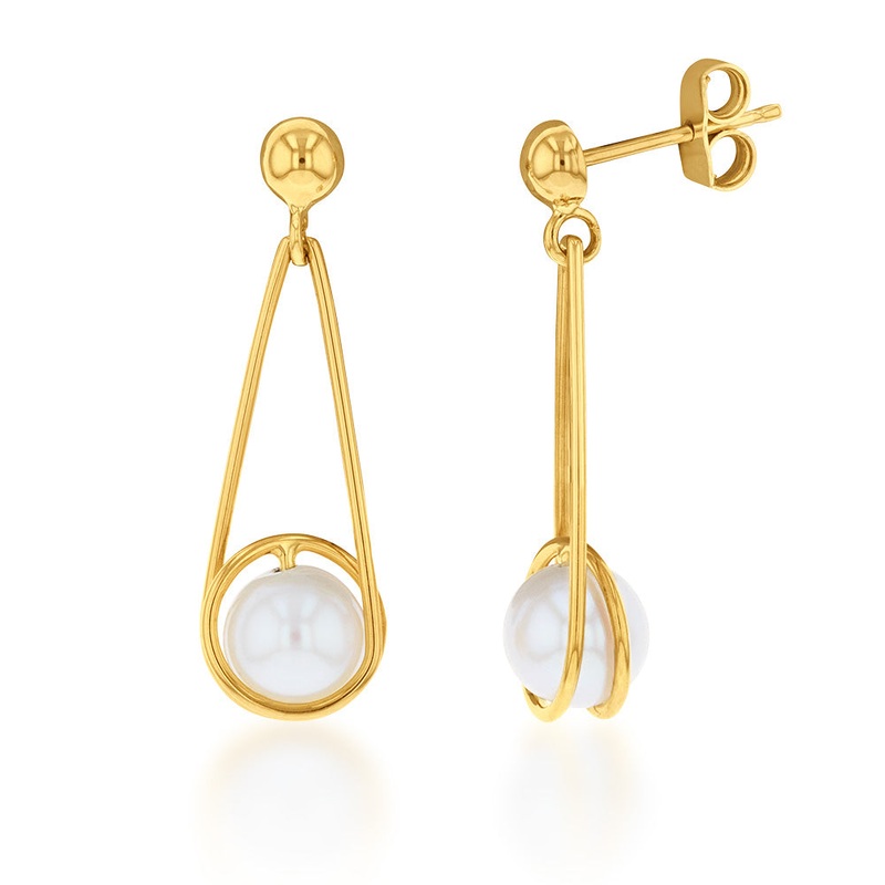 These stunning 9ct Freshwater Pearl Drop Earrings are truly like no other. The smooth round pearls are cradled by delicate gold arms. Finished in the smooth 9ct gold with a push back clasp that is comfortable to wear. These earrings will elevate your outfit and are perfect for a formal event. Embrace elegance and class with the vintage feel of gorgeous pearls.