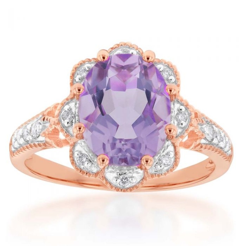 9ct Rose Gold 2.40ct Amethyst and 1/10 Carat Diamond Ring