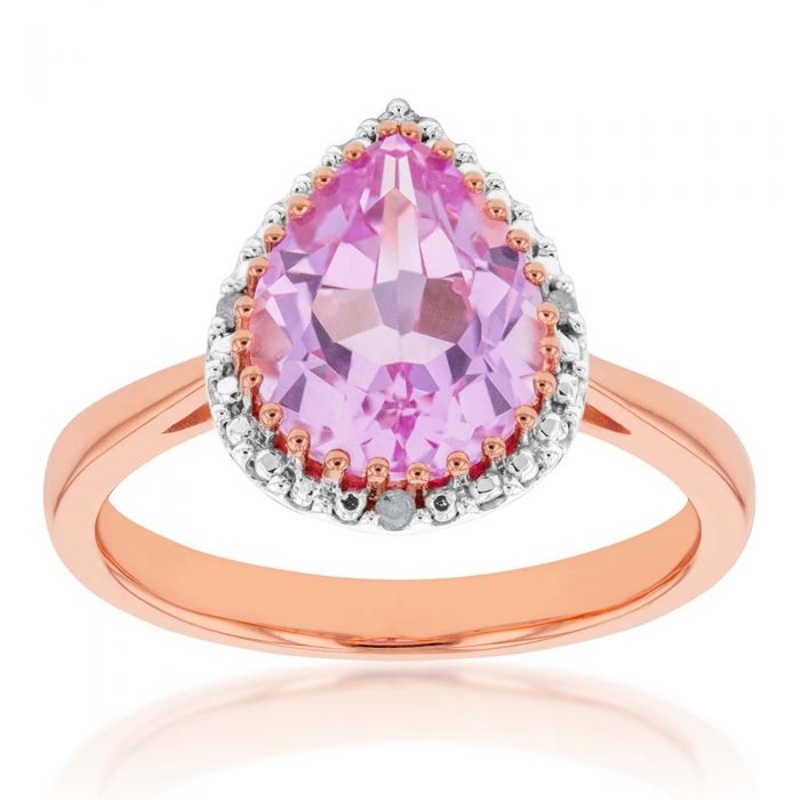 Experience the enchanting beauty of our 9ct Rose Gold Created Peach Sapphire and Diamond Pear Cut Ring. Crafted with meticulous artistry, this ring showcases a captivating pear-cut created peach sapphire at its centre, exuding a soft and alluring peach hue reminiscent of a delicate sunset. The warm tones of the 9ct rose gold band complement the gemstone perfectly, infusing the piece with a romantic and feminine charm. Dazzling diamonds accentuate the elegant curves of the pear-shaped stone, creating a breathtaking display of brilliance.