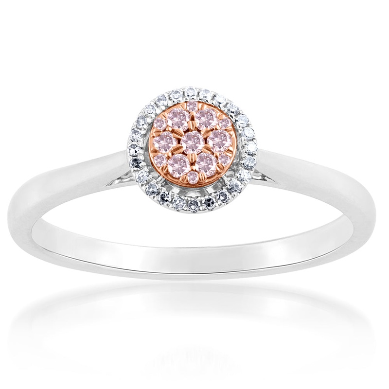 9ct White and Rose Gold 0.15 Carat Diamond Ring With Pink Argyle Diamonds