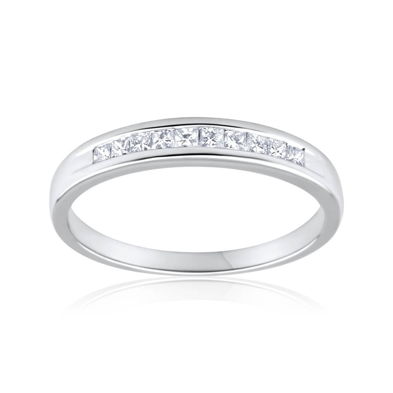 9ct White Gold 1/4 Carat Diamond Ring Set With 10 Princess Cut Diamonds