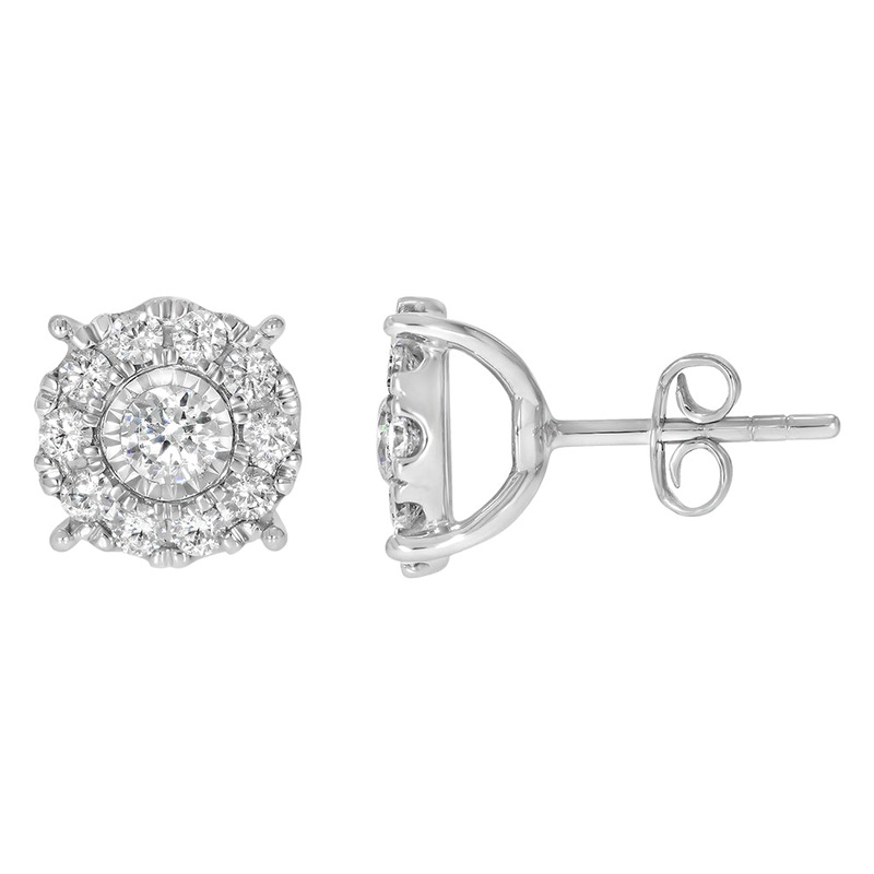 Glisten under light in these 9ct White Gold 1.5 Carat Diamond Stud Earrings. Each stud features an array of shimmering white diamonds, with a large centre stone showing beautiful texture. 9ct white gold provides the best of durability and elegance, matching the diamonds for colour and shine. This luxury pair are a perfect gift for someone special, with unmistakable beauty.