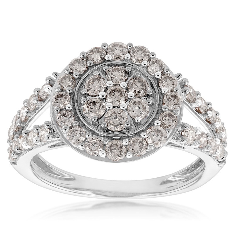 Elevate your style with our 9ct White Gold 1 Carat Diamond Round Shape Cluster Ring. This exquisite ring features a stunning 1 Carat round-shaped diamond surrounded by dazzling Km coloured diamonds with P1/3 clarity. Its unique centrepiece, which embodies 6 petal flowers when observed closely, adds an extra touch of sophistication and charm to this elegant piece. Crafted in radiant 9ct white gold, it’s the perfect choice for those who appreciate a balance of beauty and individuality in their jewellery.