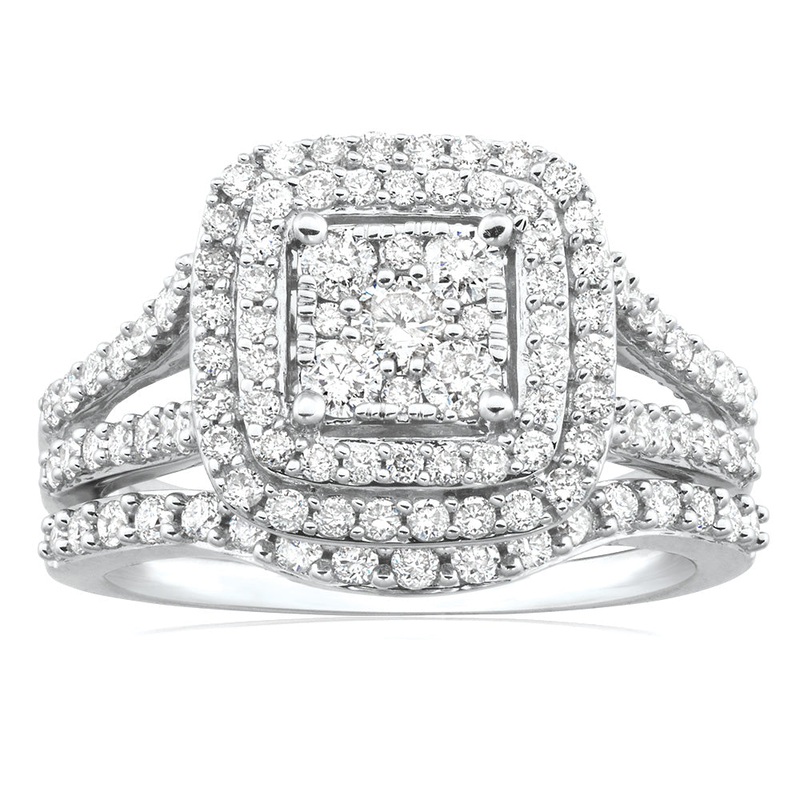 Celebrate your love with our exquisite 9ct White Gold 2 Ring Bridal Set, adorned with 1.2 Carats of Diamonds. This captivating bridal set features brilliant cut diamonds with P1/3 clarity and Ik colour, symbolising the purity and brilliance of your union. Crafted in radiant 9ct white gold, it’s a timeless and elegant choice to mark the beginning of your beautiful journey together.