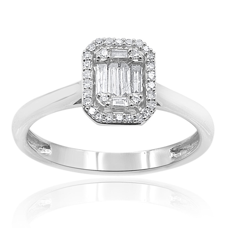 9ct White Gold Diamond Ring With 30 Brilliant and 6 Baguette Cut Diamonds