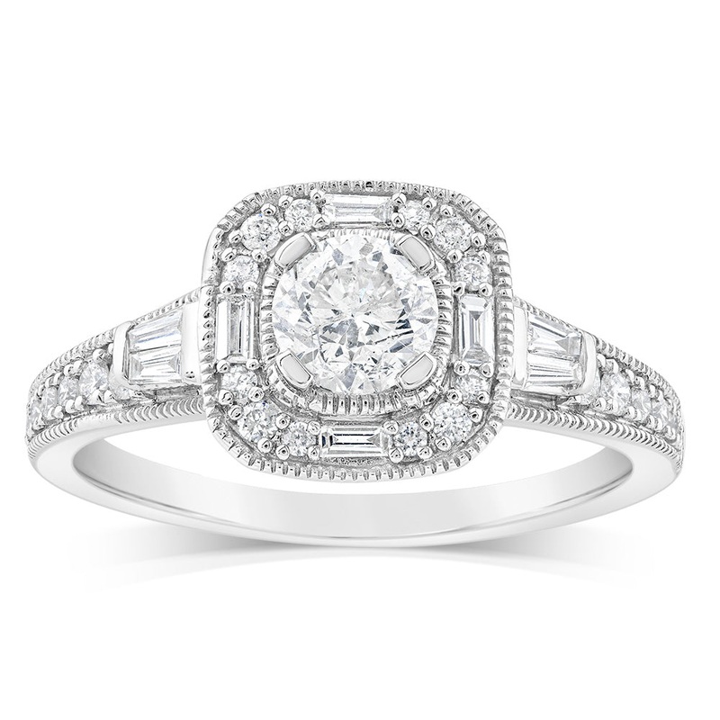 9ct White Gold Fancy Cushion Shaped Ring in 3/4 Carat Natural Diamonds