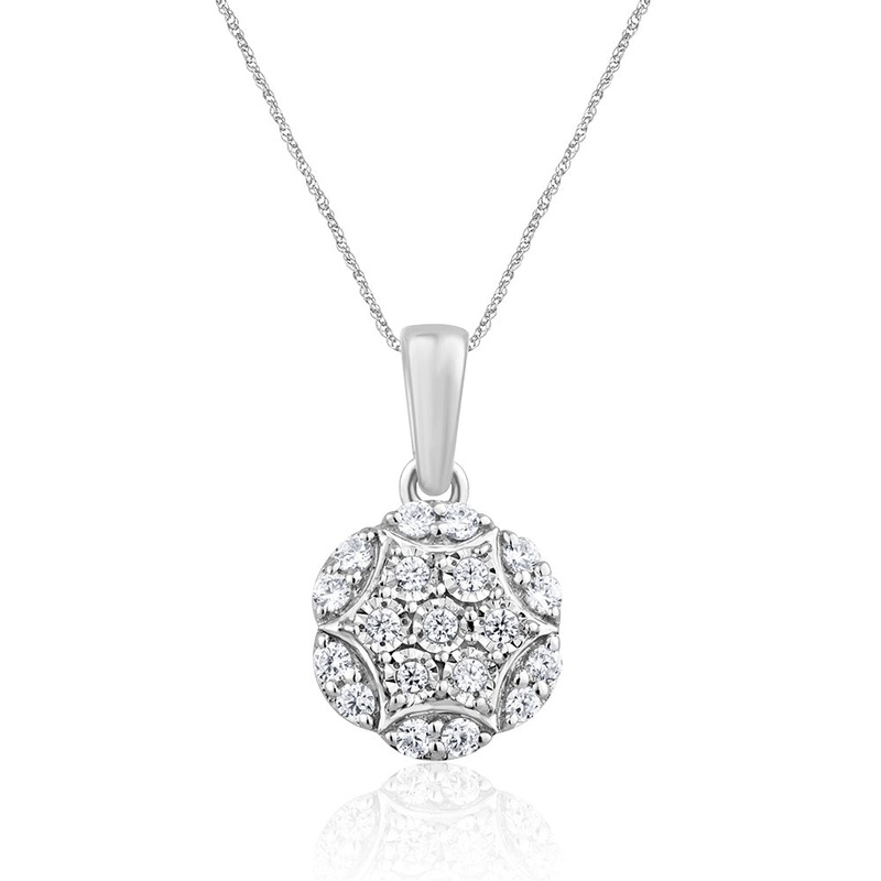 9ct White Gold Flower Shape Cluster Diamond Pendant on 45cm Chain