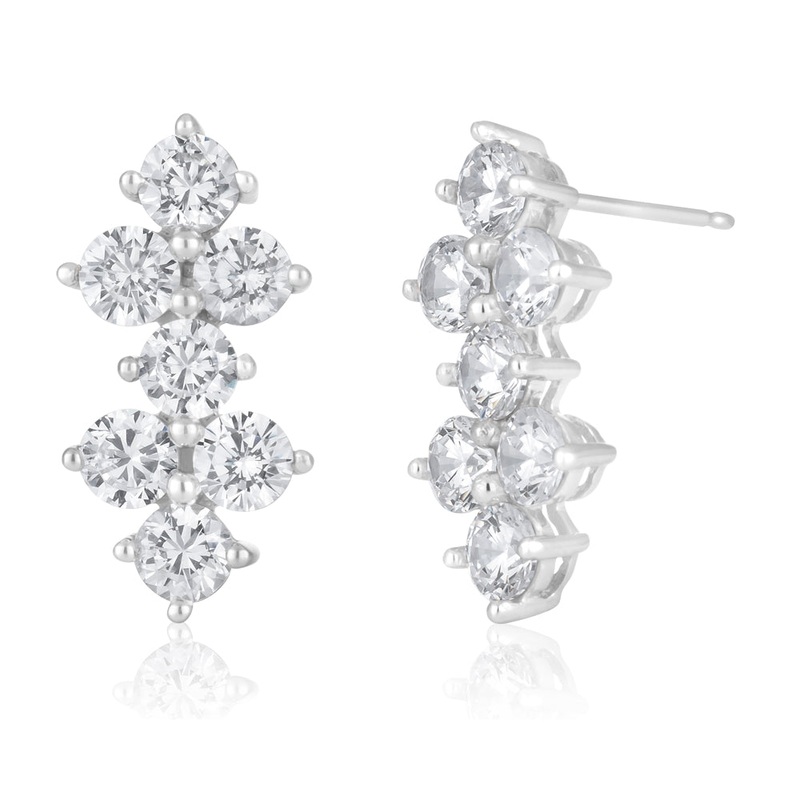 9ct White Gold Zirconia Cluster Studs