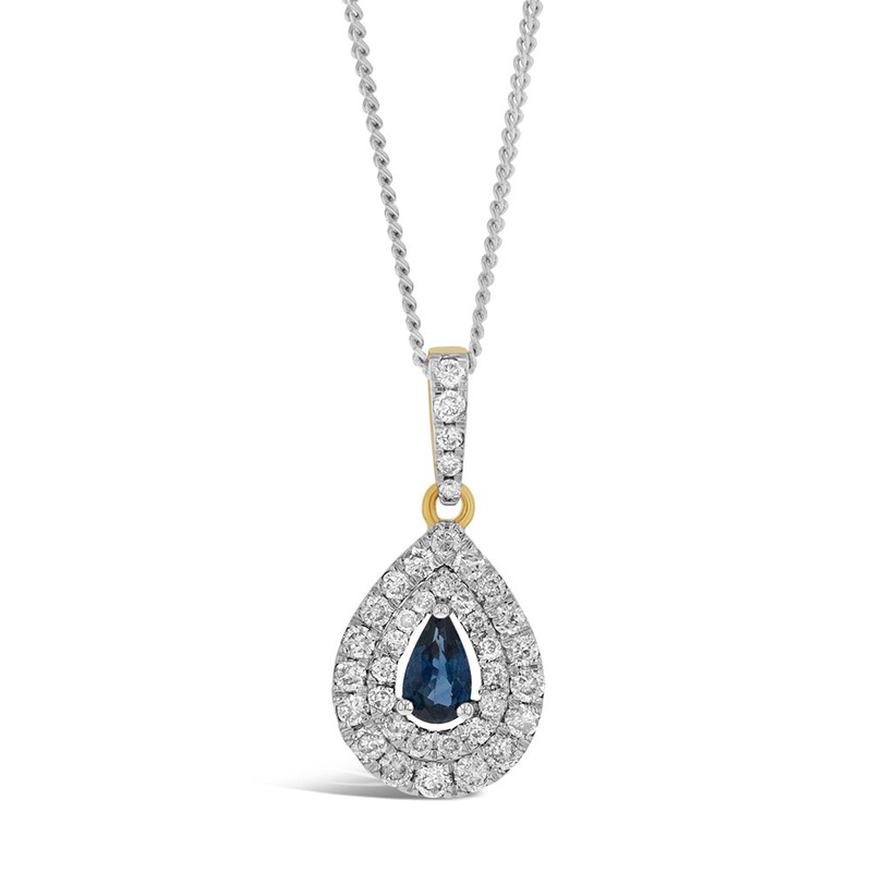 Be the first to review “9ct Yellow Gold 0.24ct Natural Blue Sapphire and 0.39ct Diamond Double Halo Pendant”