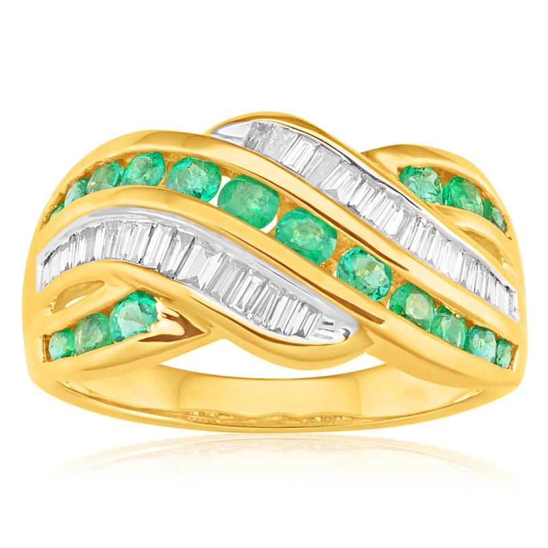 9ct Yellow Gold 0.73ct Natural Emerald and 0.30 Carat Diamond Ring