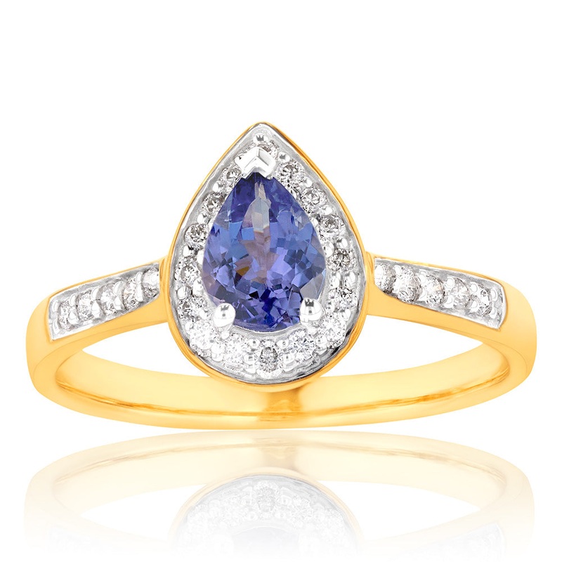9ct Yellow Gold 0.75ct Tanzanite and 0.20 Carat Diamond Ring