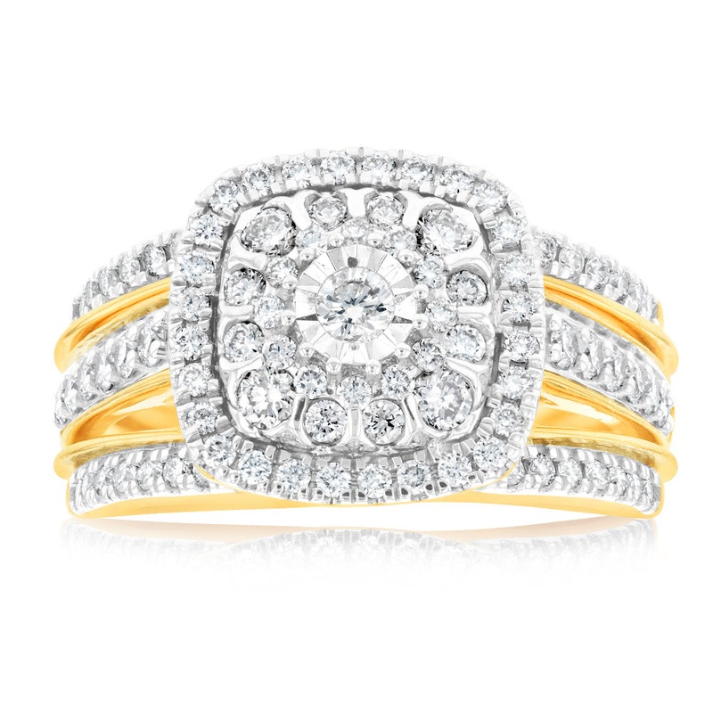 9CT Yellow Gold 1 Carat Diamond Ring With 109 Brilliant Diamonds