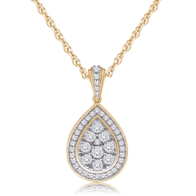 9ct Yellow Gold 1/5 Carat Diamond Pear Cluster Pendant