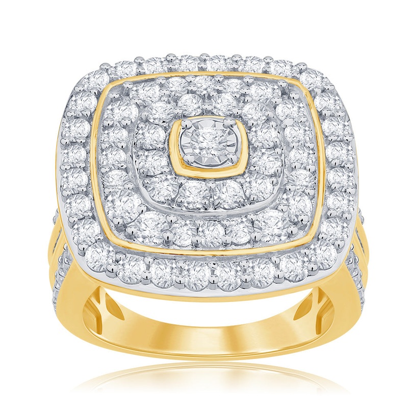 9ct Yellow Gold 3 Carat Diamond Cushion Cluster Ring with Brilliant Diamonds