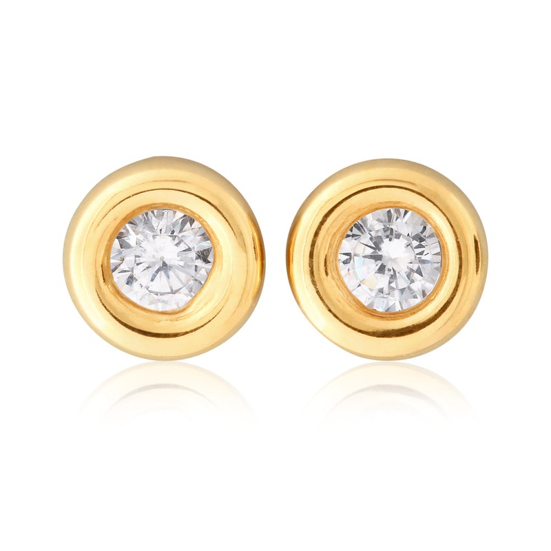 Features: Made using glossy and enduring yellow gold. Crafted with a double bezel setting around the zirconia for contrast and bold look. Set with a strong back for easy fastening.