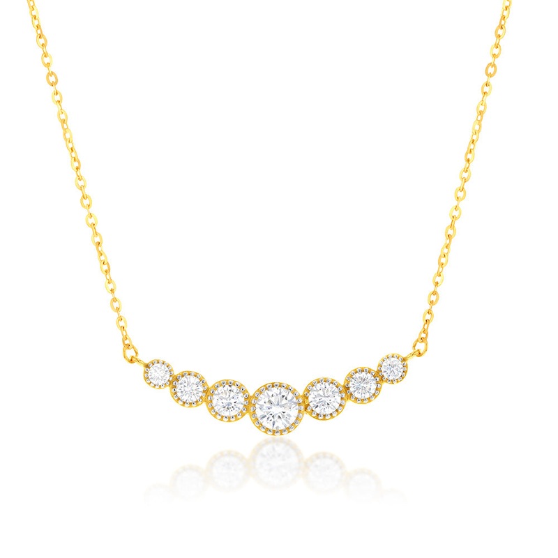 Stand out in this 9ct Yellow And White Gold Cubic Zirconia On Multiple Circle Pendant With 43.2cm Chain. Elegant in design, this gorgeous pendant adds length to your chain. Its brilliant cut zirconia stones are held in yellow gold settings with touches of white gold for a complementary effect. A divine gift for someone you adore.