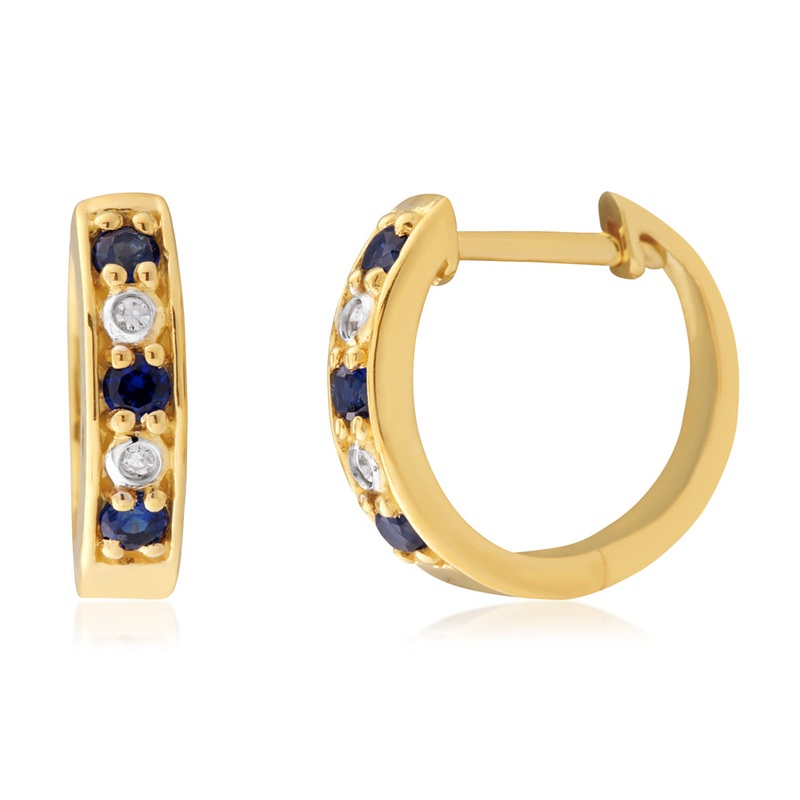 9ct Yellow Gold Created Sapphire & Diamond Huggies