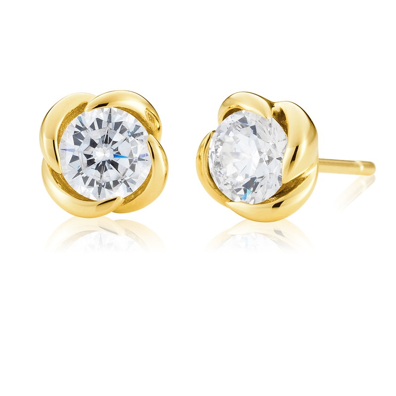9ct Yellow Gold Cubic Zirconia Beautiful Flower Stud Earrings