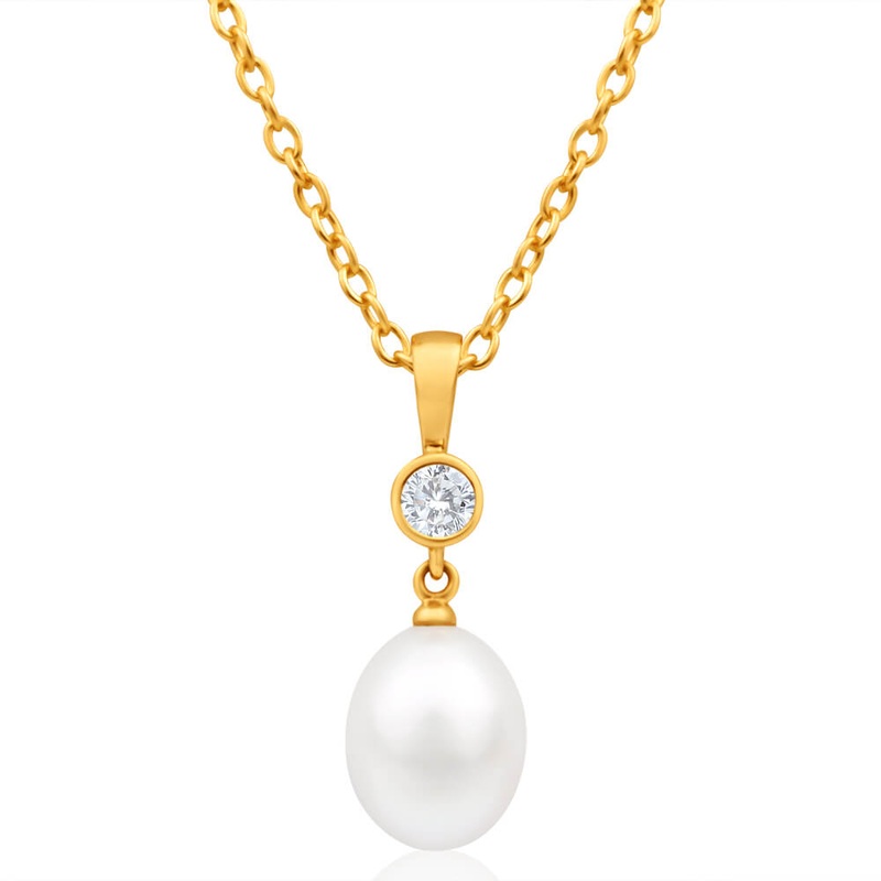 9ct Yellow Gold Cubic Zirconia + Pearl Pendant