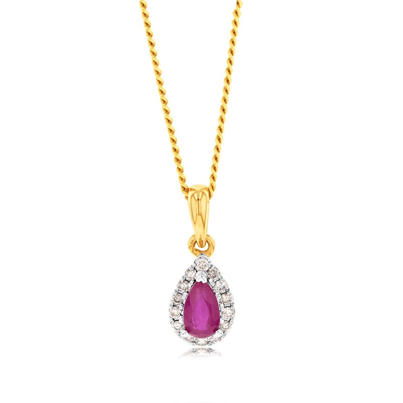 Be the first to review “9ct Yellow Gold Diamond And Created Pear Ruby Pendant”