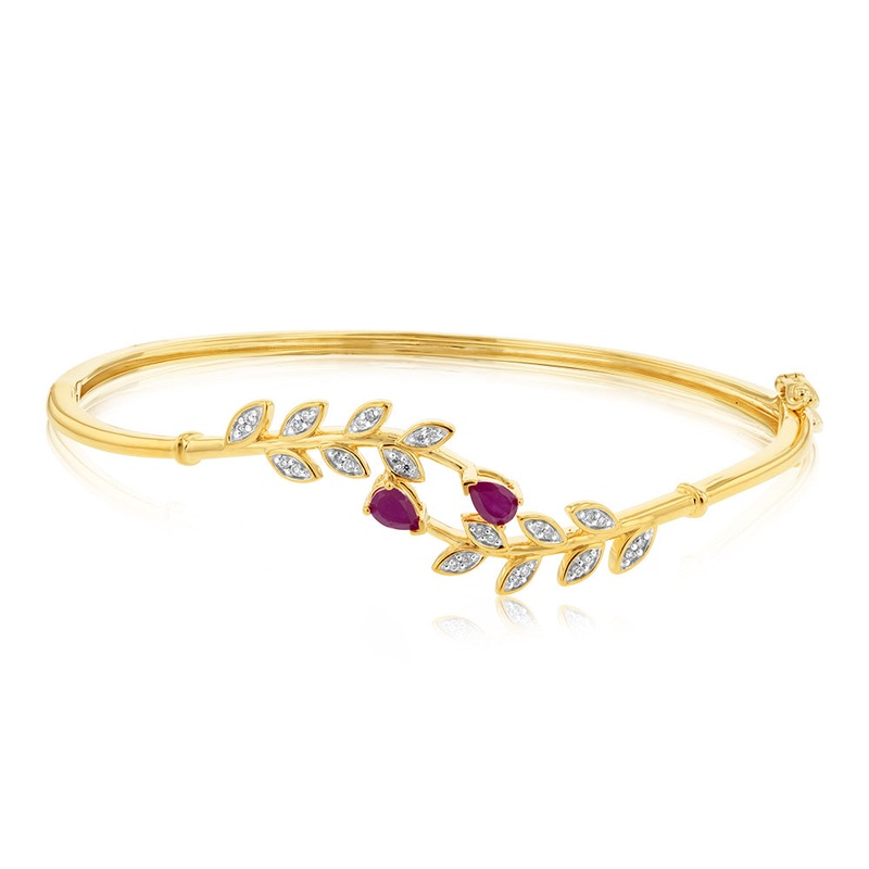 9ct Yellow Gold Diamond And Created Ruby Bangle