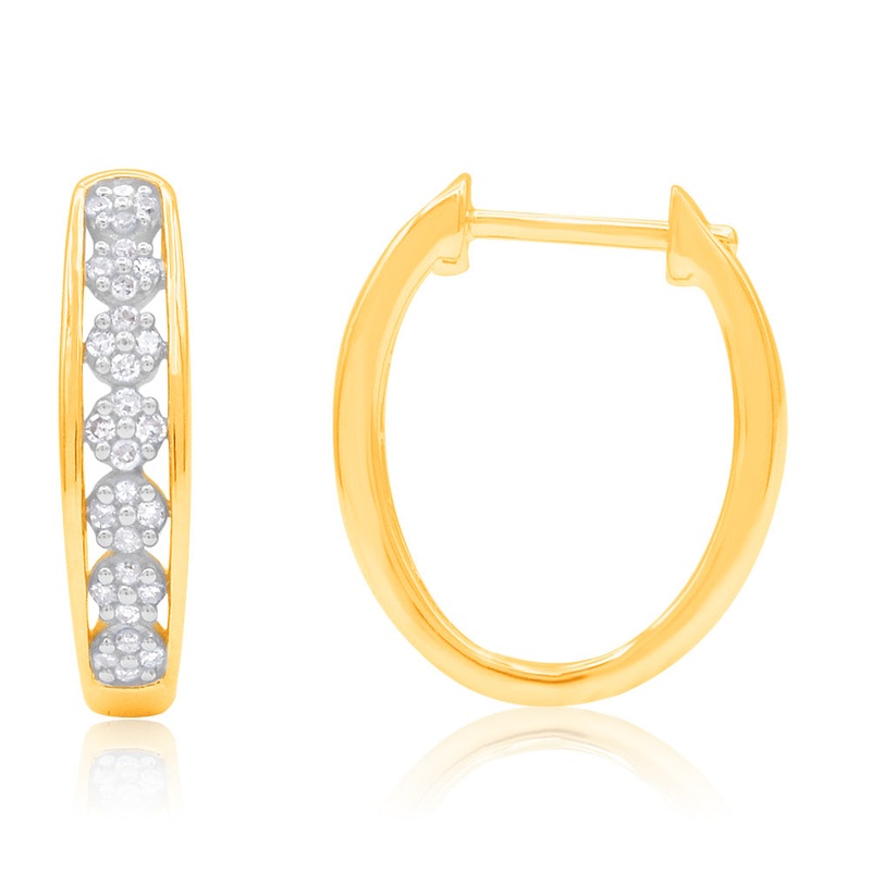 9ct Yellow Gold Diamond Hoop Earrings With 56 Brilliant Diamonds
