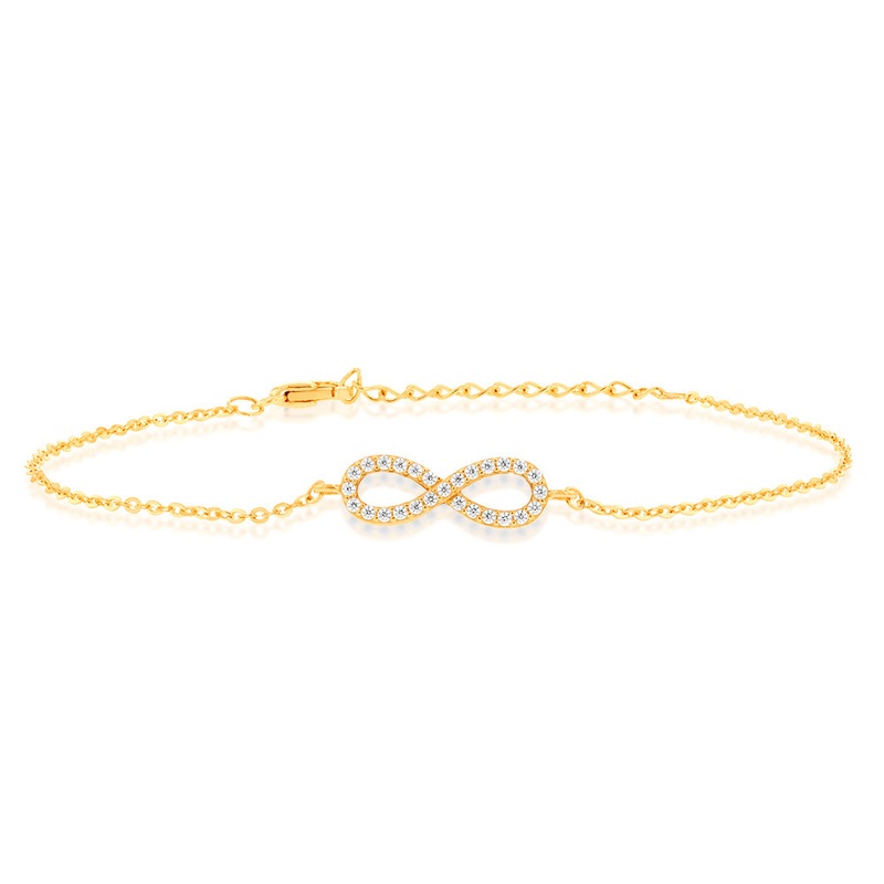 This 9ct Yellow Gold “Everlasting Love” 19cm Zirconia Infinity Bracelet is a beautiful, heart-warming piece. The infinity sign is a symbolic of an everlasting love and relationship, making it perfect for jewellery and gifting. Set with zirconia gemstones, the golden curves of the sign are host to a light sparkle. The thin design of this bracelet is cute and wonderfully feminine. Wear it will any kind of outfit and let its fine 9ct yellow gold features shine.