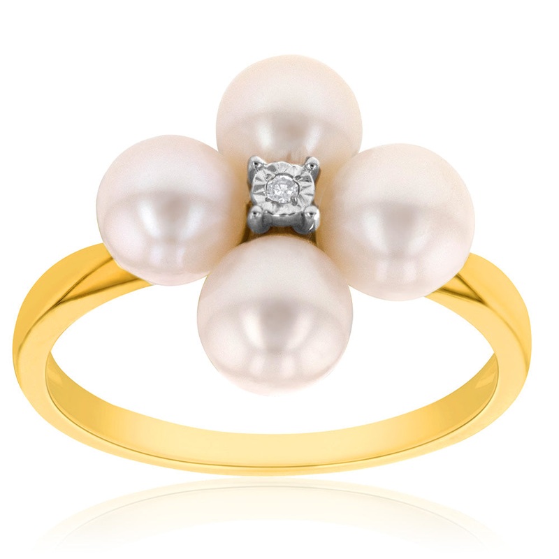 9ct Yellow Gold Freshwater Pearl and Diamond Ring