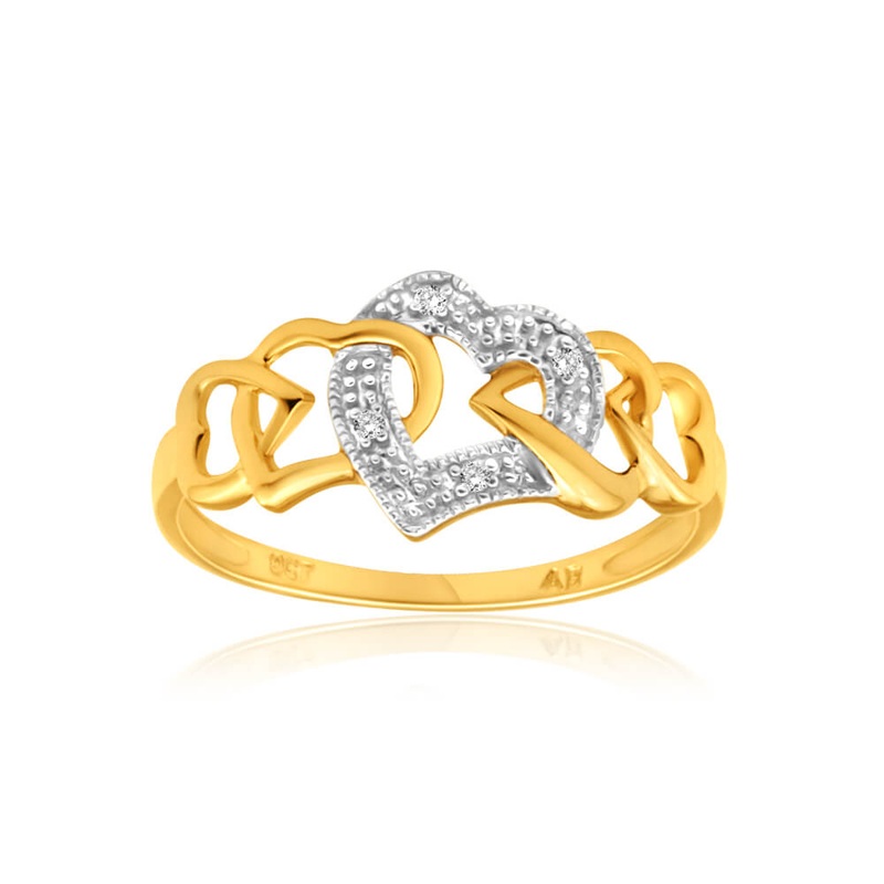 Express your contemporary style with this 9ct Yellow Gold Heart Shaped Diamond Ring. Fashioned with elegance in mind, this timeless yellow gold ring provides an exceptional finishing touch to any attire. The design of this ring gives it a classy appeal as well as the gold-tone of this masterpiece makes it versatile enough to wear on any occasion. Whether you are looking for a ring to wear both regularly and on special occasions, this ring will surely meet both.