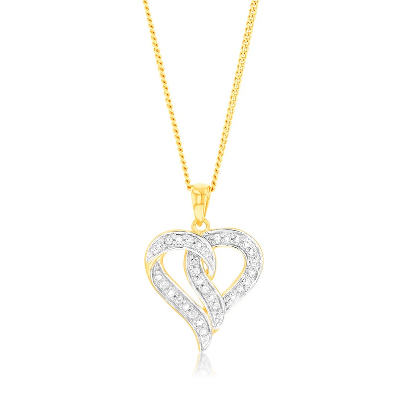 9ct Yellow Gold Heart Shaped Pendant in 14 Diamonds