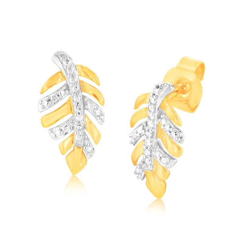 9ct Yellow Gold Leaf Shaped Diamond Stud Earrings