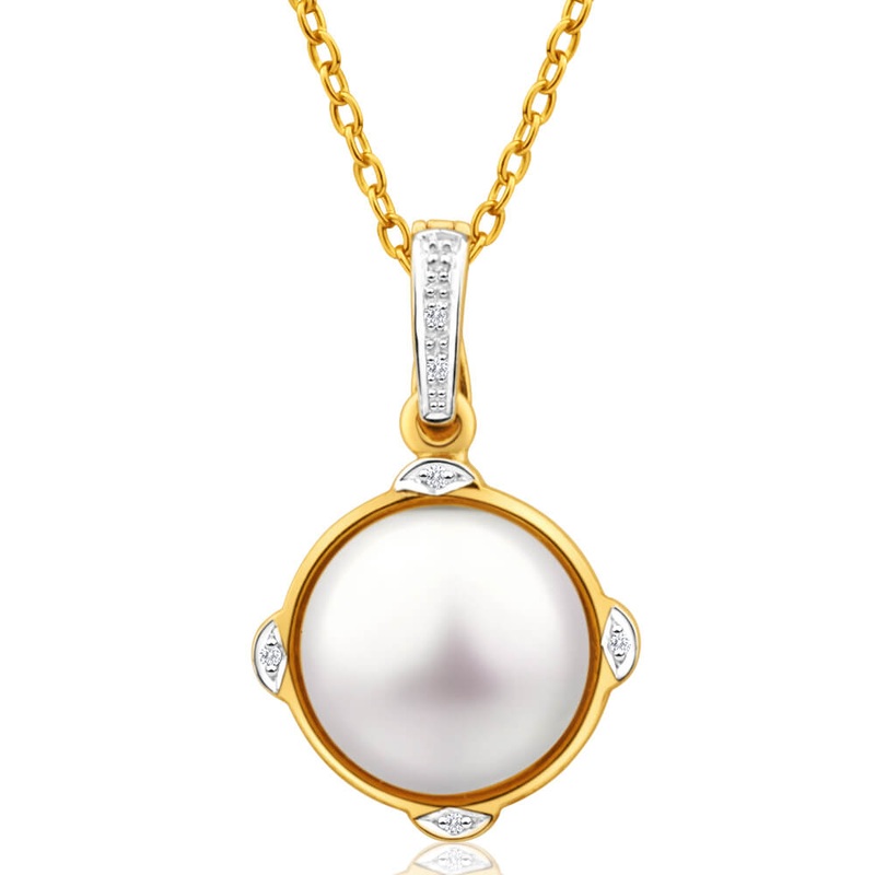 9ct Yellow Gold Magnificent Diamond + Pearl Pendant