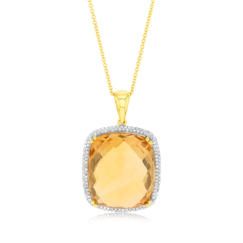 9ct Yellow Gold Natural Citrine And Diamond Pendant On Chain