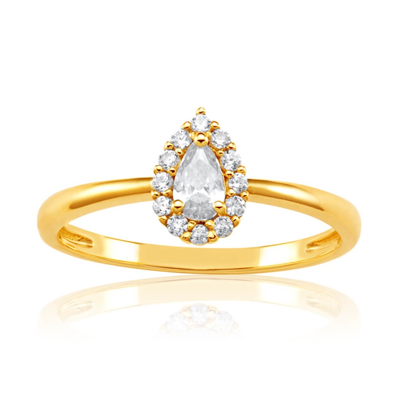 9ct Yellow Gold Pear Shaped Cubic Zirconia Halo Ring
