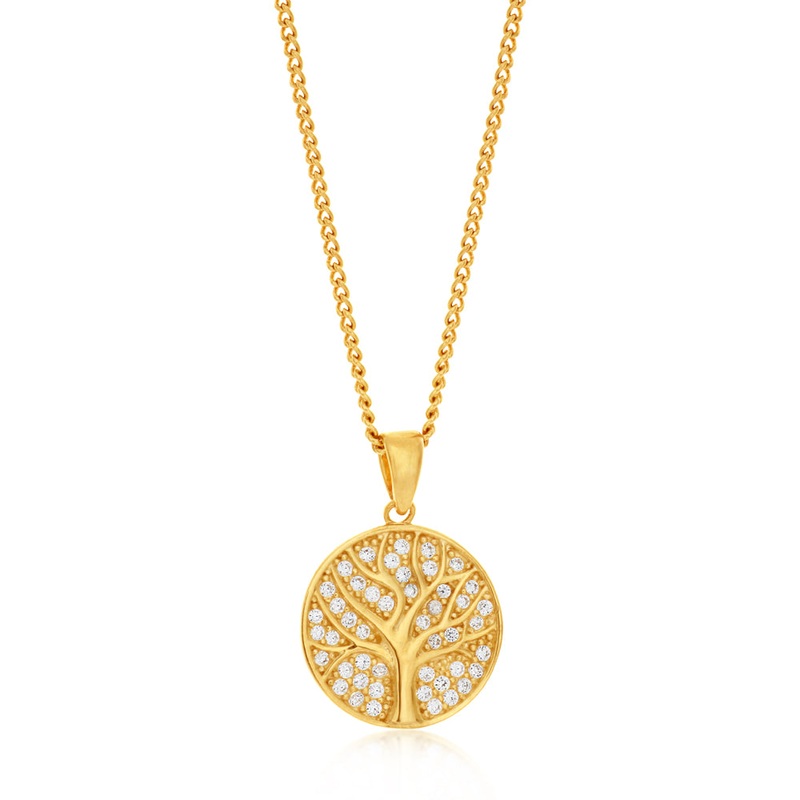 9ct Yellow Gold Tree of Life with Cubic Zirconia Pendant