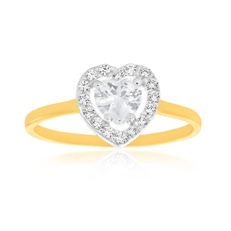 9ct Yellow Gold & White Gold Cubic Zirconia Heart Halo Ring