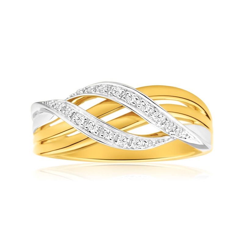 Exquisitely designed to stand out, this brilliant cut 9ct Yellow Gold & White Gold Diamond Ring has been carefully crafted to showcase elegance. The intricate detail in every wave intertwines effortlessly to capture a style that radiates. The play with yellow gold and white gold tones sets this ring apart from the norm, and the clever addition of diamonds at the top adds an element of class. A true masterpiece that weaves together to denote the tale of a love everlasting.