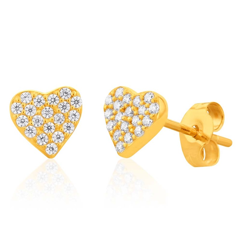 9ct Yellow Gold Zirconia Heart Studs