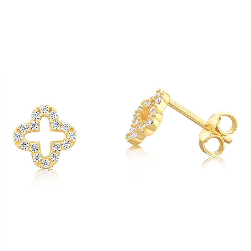9ct Yellow Gold Zirconia Open Flower Stud Earrings