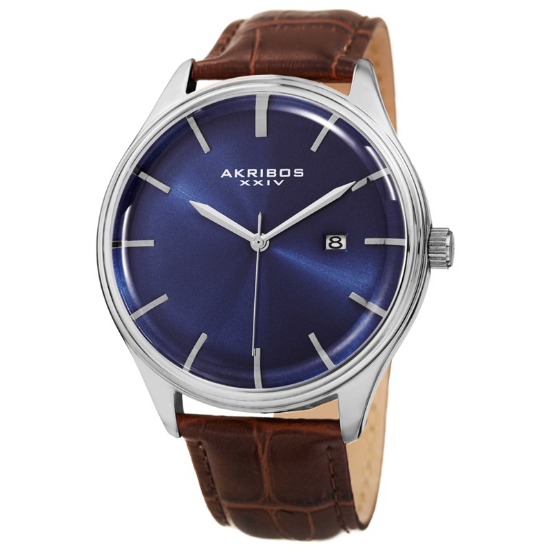 Akribos Xxiv, Classic, Men’s Watch, Alloy Case, Leather Strap, Quartz, AK914SSBU