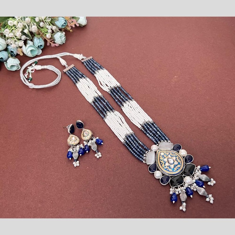 Elevate your style with the Akruti Collection 2 Tone Plated Kundan Stone And Pearls Meenakari Necklace Set. This stunning set features exquisite two-tone plating, sparkling Kundan stones, and delicate pearls, creating a sophisticated and timeless look. Complete your outfit and make a statement with this elegant set.Note: Image may be vary slightly from the actual product