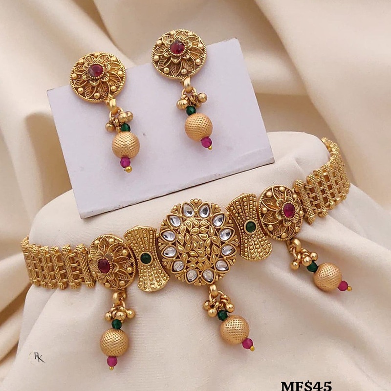 This exquisite necklace set from Akruti Collection features gold plating and kundan and pota stones. Crafted with precision, it exudes elegance and adds a touch of sophistication to any outfit. Perfect for special occasions, this set is sure to make a statement and enhance your overall look….. Note: Image may vary slightly from the actual product.